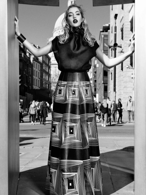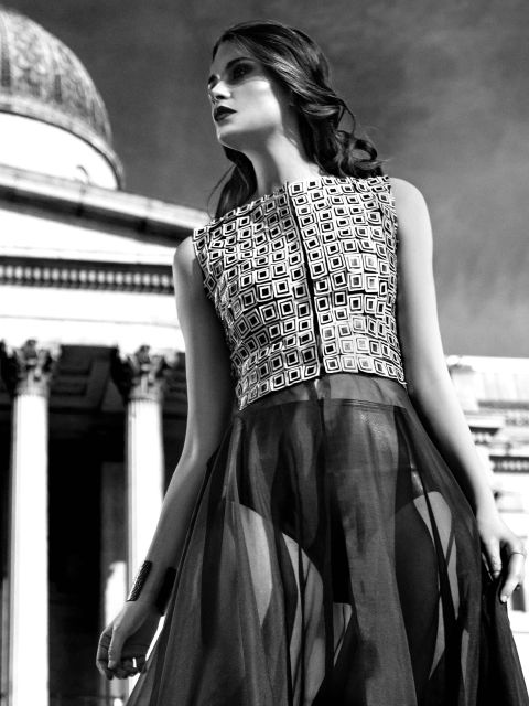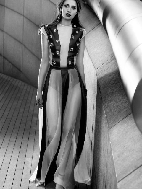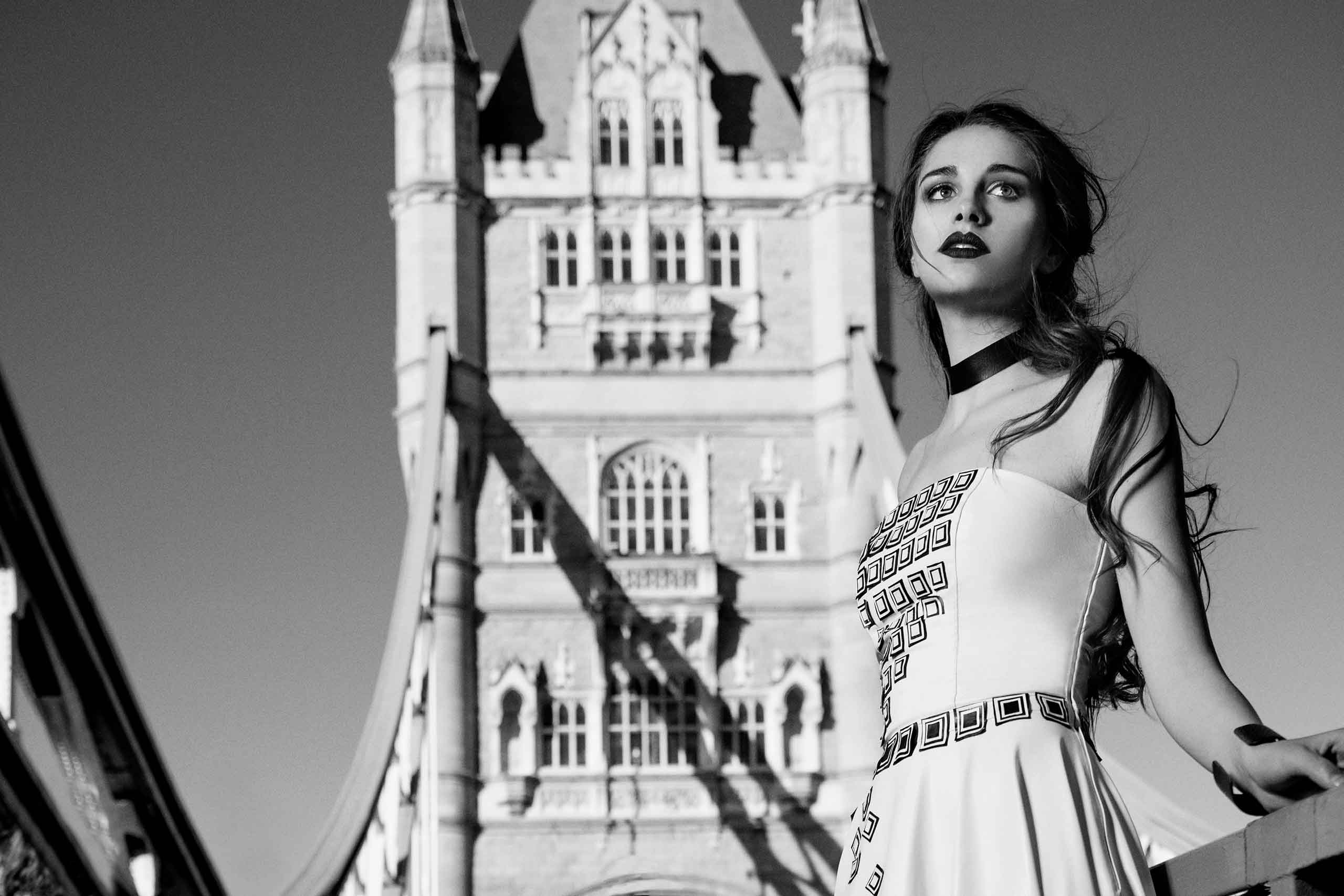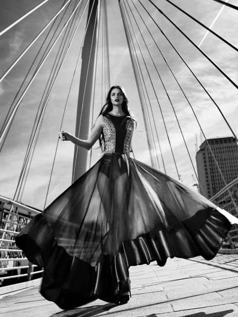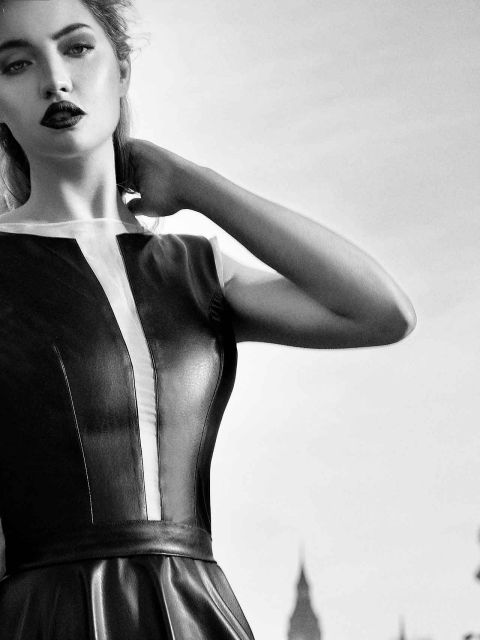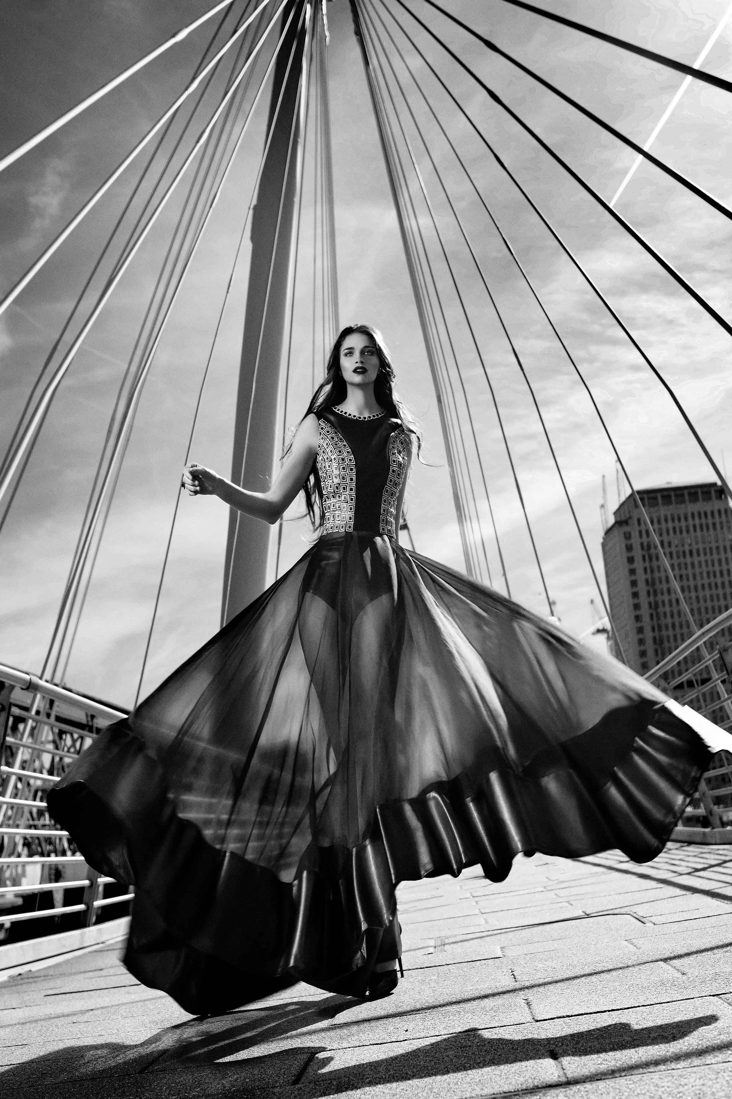 La Collezione “Black&White in London” nasce dall’idea di una stampa Optical che è stata progettata graficamente dai corsisti di Fashion Graphic Design, poi stampata su Ecopelle e accostata ad un tessuto leggero come il Voile. Tecnicamente molto complesso accostare tessuti di natura così diversa e dal peso tecnico così differente… una vera e propria sfida per i nostri allievi!