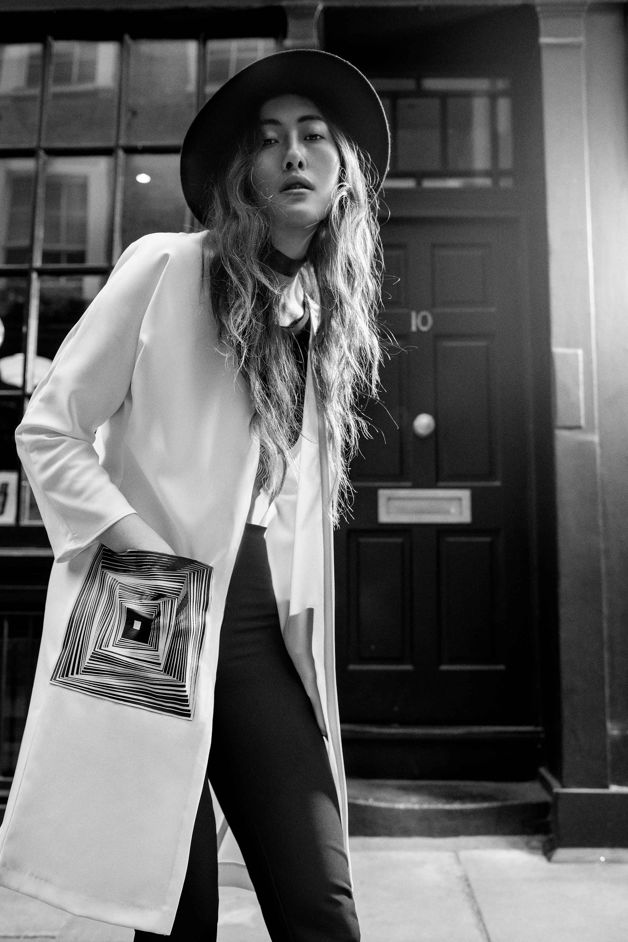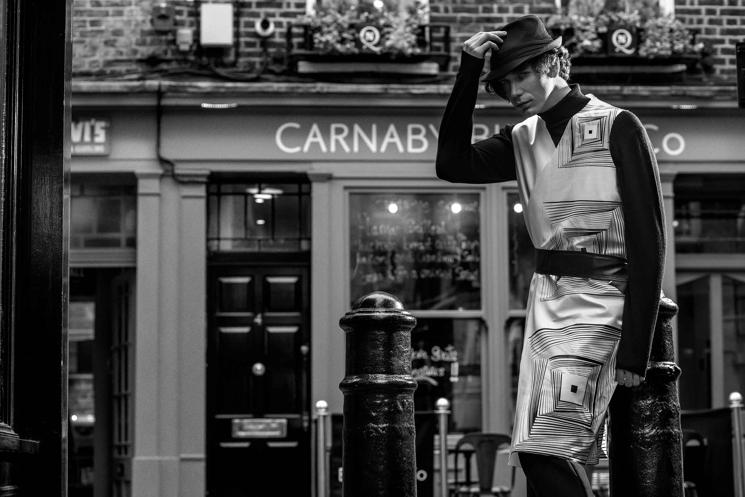 La Collezione Black&White in London è stata ideata e prodotta dai corsisti di Primo Anno Accademico, il loro primo progetto è partito dall’idea di una grafica Optical progettata con i Software Adobe e successivamente stampata su ecopelle per una linea Streetwear unisex. La Collezione è un progetto di fine anno che ha coinvolto tutti i corsisti dell’Accademia che hanno curato nei minimi dettagli il design, la progettazione e la realizzazione tecnica. I corsisti del settore Marketing & Communication Brand ne hanno curato, invece, la Campagna Pubblicitaria, lo Styling e il VideoClip.